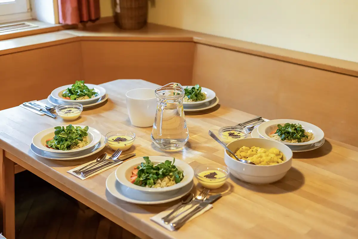 In unserer Küche legen wir großen Wert auf Regionalität und Nachhaltigkeit. Bevorzugt verwenden wir Produkte aus ökologischem Landbau, die frisch und auf kurzen Wegen zu uns gelangen. Das Fleisch stammt entweder direkt von unseren eigenen Weiden (Bioland-Qualität) oder von der Metzgerei Prüfer, die für handwerkliche Tradition und faire Erzeugung steht. Auch Gäste, die vegetarische Speisen bevorzugen, dürfen sich auf eine abwechslungsreiche, liebevoll zubereitete Auswahl freuen.